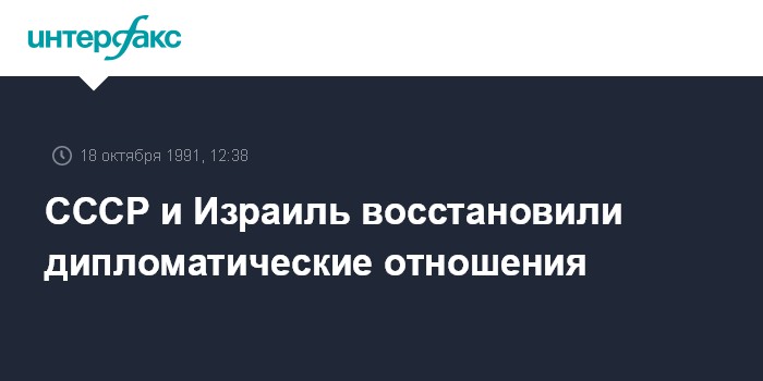 Москва. 18 октября. ИНТЕРФАКС. В пятницу днем в Иерусалиме министры иностранных дел Израиля и СССР Давид Леви и Борис Панкин подписали совместное заявление о восстановлении с 18 октября дипломатических отношений между двумя странами.