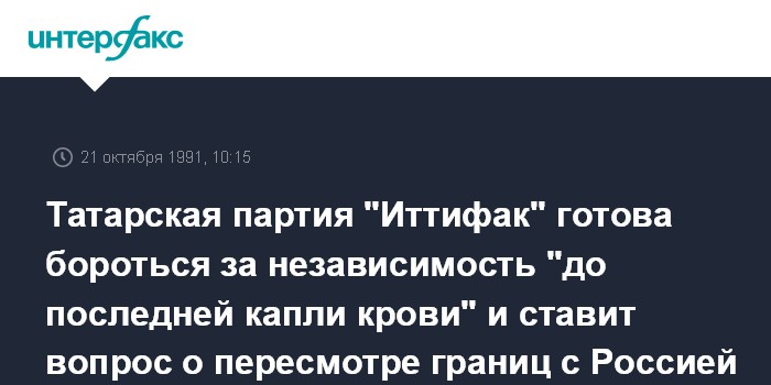 В опубликованной в Казани статье "Если ты настоящий татарин..." Ф.Байрамова подчеркивает, что провозглашение независимости Верховным Советом - "последний мирный путь, иначе будем обязаны применить другие методы борьбы". "Ради этого, - пишет лидер "Иттифак", - мы будем бороться до последней капли крови".