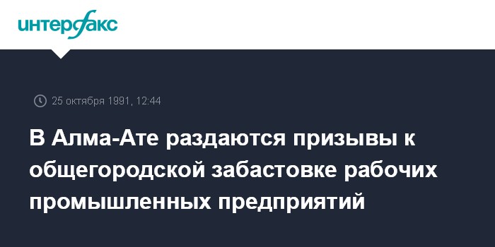 Алма-Ата. 25 октября. ИНТЕРФАКС. 25 октября после четырехсуточной забастовки вышли на строительные площадки 1200 строителей треста "Алма-Атапромстрой". Рабочие требовали отставки руководства треста, а также повышения заработной платы, увеличения отпуска до 24 дней, решения жилищной проблемы.