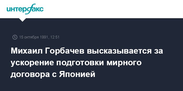 "Горбачев: Советский Союз за ускорение работы по подготовке мирного договора. Однако для этого надо создать новую атмосферу вокруг Курильских островов. Это не хитрость и не отговорка. Просто надо постепенно менять ситуацию.