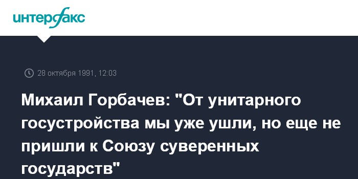 Горбачев: То, как мы будем переходить от командно-административной системы к новым формам общественно-экономической жизни, упирается в нерешенность главного вопроса – вопроса о государственности. От унитарного госустройства мы уже ушли, но еще не пришли к новому, реформированному Союзу суверенных государств.