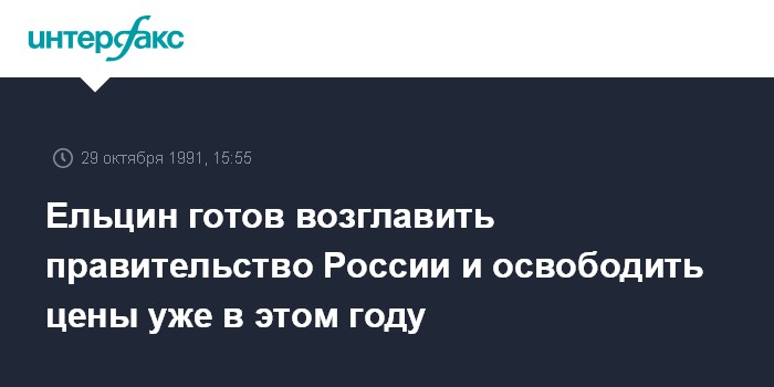 Москва. 29 октября. ИНТЕРФАКС. Президент России Борис Ельцин, выступая на открывшемся в Москве съезде народных депутатов РСФСР, заявил о своей готовности непосредственно возглавить российское правительство и "уже в текущем году" осуществить в России либерализацию цен. В результате этого "трудного, но необходимого шага", по словам президента, к осени 1992 года можно ожидать стабилизации экономики.