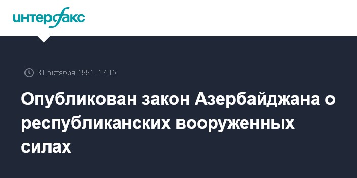 Баку. 31 октября. ИНТЕРФАКС. Вооруженные силы Азербайджана являются государственной вооруженной организацией, подчиненной президенту Азербайджана, призванной защищать интересы, суверенитет, территориальную целостность и независимость республики. Об этом говорится в опубликованном 31 октября в азербайджанской печати законе о вооруженных силах республики.