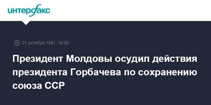 Кишинев. 31 октября. ИНТЕРФАКС. Президент Молдовы Мирча Снегур осудил действия президента СССР Михаила Горбачева по сохранению Союза ССР.