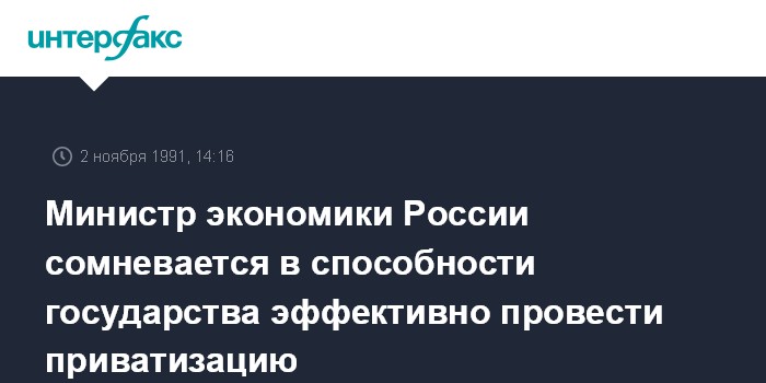 Москва. 2 ноября. ИНТЕРФАКС. В интервью корреспонденту "Интерфакса" министр экономики РСФСР Евгений Сабуров высказал сомнение в способности государства быстро и эффективно провести процесс приватизации.