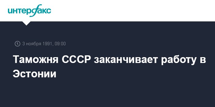 Москва. 3 ноября. ИНТЕРФАКС. С 4 ноября таможня СССР прекратит деятельность в Эстонии, сообщил "Балтфаксу" генеральный директор департамента таможни Эстонской Республики Мари Юргенс.