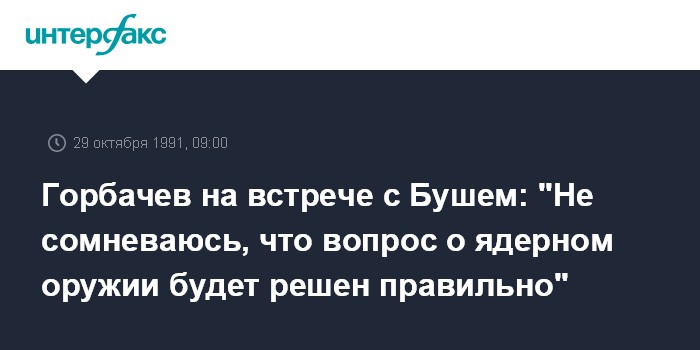 Горбачев: Видимо, надо потерпеть до 1 декабря. Но я не сомневаюсь, что вопрос о ядерном оружии будет решен правильно. Что касается ситуации на сегодняшний день, то контроль является стопроцентным. Оснований для беспокойства нет, никто не может даже близко подойти к ядерному оружию...