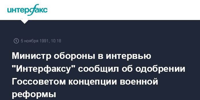Москва. 5 ноября. ИНТЕРФАКС. В понедельник Госсовет СССР "почти единогласно" поддержал представленную министерством обороны СССР концепцию создания единых Вооруженных Сил суверенных республик. Об этом сообщил во вторник в интервью корреспондентам "Интерфакса" министр обороны СССР Евгений Шапошников.