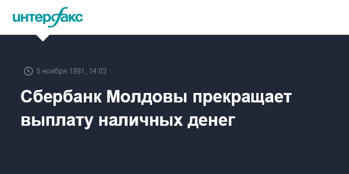 Кишинев. 5 ноября. ИНТЕРФАКС. Сбербанк Молдовы прекратил выдачу наличных денег и начисление средств на вклады по расчетным чекам, сертификатам и чековым книжкам, выданным в РСФСР после 1 октября 1991 года. Об этом Сбербанк официально сообщил во вторник.