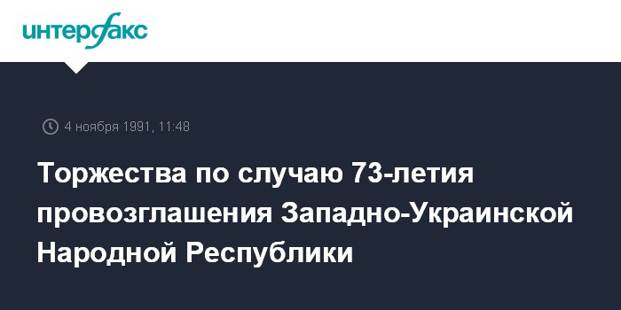 Львов. 4 ноября. ИНТЕРФАКС. Во Львове проходят торжества, посвященные 73-летию провозглашения Западно-Украинской Народной Республики.