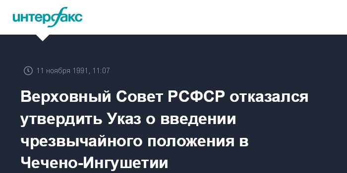 Рассмотрев Указ Президента РСФСР "О введении чрезвычайного положения в Чечено-Ингушской Республике", Верховный Совет РСФСР постановляет: