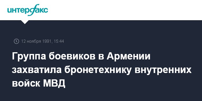 Ереван. 12 ноября. ИНТЕРФАКС. По данным, полученным "Интерфаксом" из источников в МВД Армении, 11 октября из Еревана в направлении Тбилиси для проведения планового ремонта вышла колонна бронетехники внутренних войск МВД СССР.