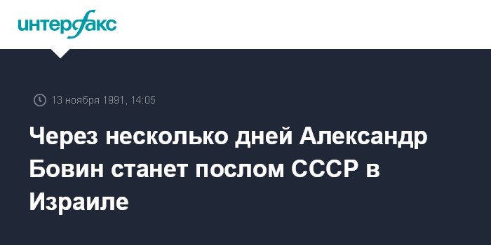 Москва. 13 ноября. ИНТЕРФАКС. Президент Михаил Горбачев подписал указ о назначении посла Советского Союза в Государстве Израиль. Об этом корреспонденту "Интерфаксу" сообщили в пресс-службе президента СССР.