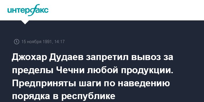 Грозный. 15 ноября. ИНТЕРФАКС. 15 ноября в Грозном опубликованы два постановления Совета обороны Чеченской Республики, подписанные президентом республики генералом Д.Дудаевым.
