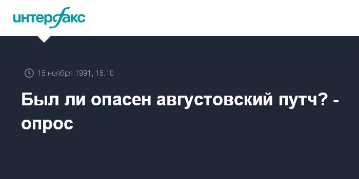 Москва. 15 ноября. ИНТЕРФАКС. Действия организаторов государственного переворота 19-21 августа не представляли опасности для страны, заявили 29% участников опроса, проведенного 9-10 ноября Всесоюзным центром изучения общественного мнения.