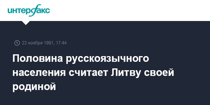 Вильнюс. 22 ноября. ИНТЕРФАКС. По данным опроса государственного центра национальных проблем Литвы, 56% русских, проживающих в республике, считают ее своей родиной.