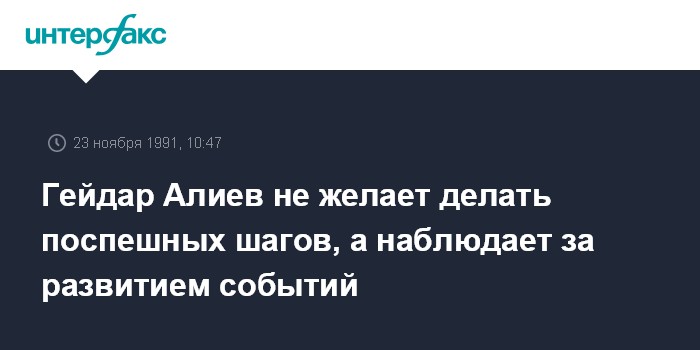 Нахичевань. 23 ноября. ИНТЕРФАКС. Председатель Верховного меджлиса (парламента) Нахичеванской автономной республики Гейдар Алиев заявил в интервью "Интерфаксу", что пока не хочет делать "поспешных шагов", а "наблюдает за развитием событий" в армяно-азербайджанском конфликте, который обострился после катастрофы военного вертолета в Нагорном Карабахе.