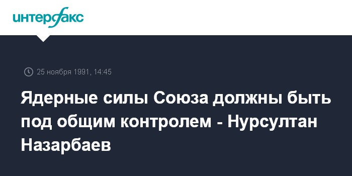 Алма-Ата. 25 ноября. ИНТЕРФАКС. Президент Казахстана Нурсултан Назарбаев подтвердил свою точку зрения, что контроль над ядерными силами должен осуществляться со стороны всех членов нового Союза.