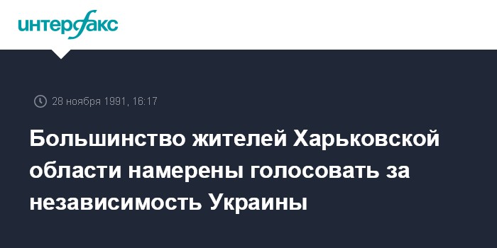 Харьков. 28 ноября. ИНТЕРФАКС. 63% жителей Харьковской области, являющейся преимущественно русскоязычным регионом, намерены поддержать независимость Украины во время предстоящего 1 декабря референдума.
