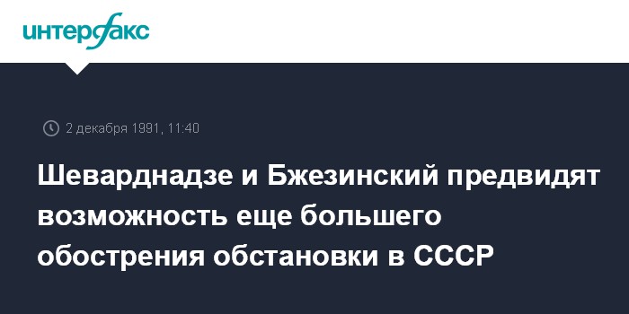 Как сообщил корреспонденту "Интерфакса" один из источников в окружении Збигнева Бжезинского, последний на переговорах с Шеварднадзе определил ситуацию в СССР как "предреволюционную", имея в виду опасность непредсказуемых последствий, к которым она может привести.