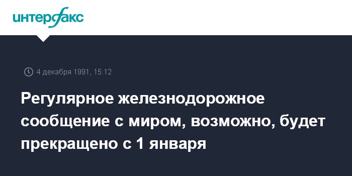 Москва. 4 декабря. ИНТЕРФАКС. Регулярное движение железнодорожных пассажирских поездов за рубеж будет прекращено с 1 января 1992 года, если Министерству путей сообщения СССР не будут выделены средства для финансирования зарубежных пассажирских перевозок, было сообщено на пресс-конференции в министерстве в среду.