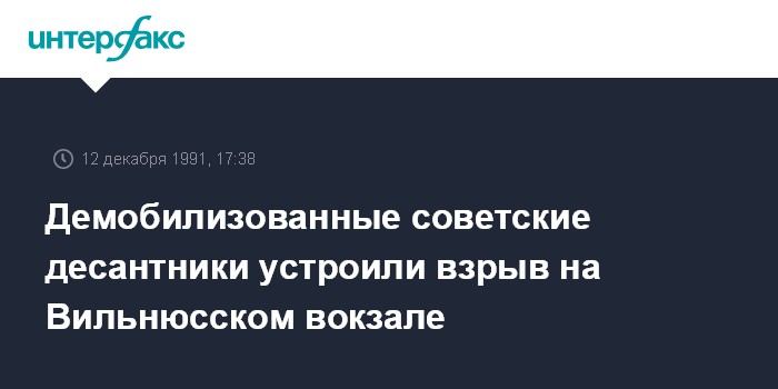 Вильнюс. 12 декабря. ИНТЕРФАКС. Демобилизованные из Советской Армии десантники устроили 10 декабря взрыв на центральном перроне Вильнюсского вокзала, сообщила 12 декабря пресс-служба парламента Литвы