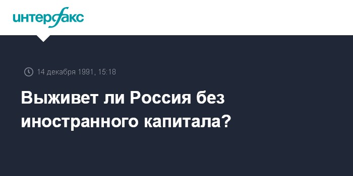 Москва. 14 декабря. ИНТЕРФАКС. Россия сможет обойтись без финансовой помощи Запада, считают 45% участников ноябрьского опроса ВЦИОМ. Опрошено 1960 человек по репрезентативной выборке по стране.