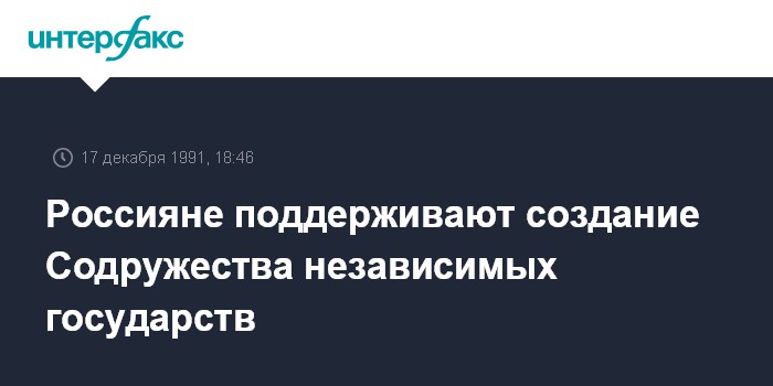 Москва. 17 декабря. ИНТЕРФАКС. Как свидетельствуют данные декабрьского опроса ВЦИОМ, 64% россиян приветствуют подписание Договора о создания Содружества независимых государств. 11% не одобряют новое соглашение.