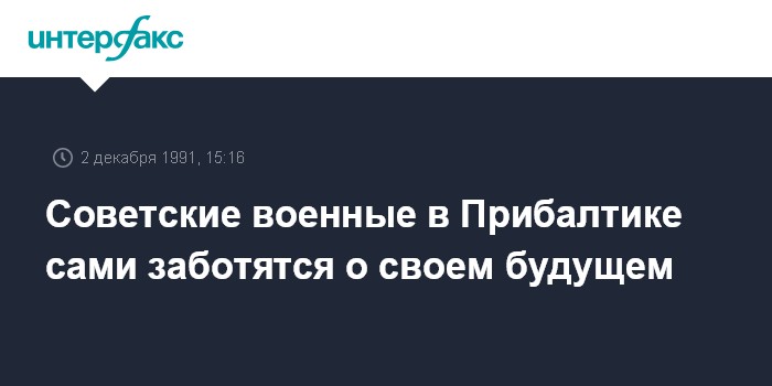 Москва. 2 декабря. ИНТЕРФАКС. По сообщениям СМИ, некоторые военачальники советских войск, дислоцированных в Прибалтике, начали самостоятельно устанавливать контакты с муниципальными властями различных городов России. Они ведут переговоры с целью заключить договора о долевом и индивидуальном строительстве жилья для военнослужащих, находящихся сейчас в Балтии.