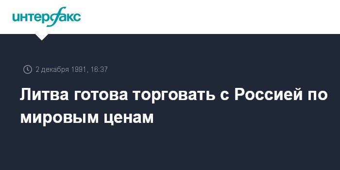 Вильнюс. 2 декабря. ИНТЕРФАКС. Выступая по литовскому телевидению, заместитель министра экономики Литвы Витас Навицкас (Vytas Navickas) сообщил, что Литва готова торговать с Россией по мировым ценам и рассчитываться в долларах.