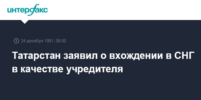 Казань. 24 декабря. ИНТЕРФАКС. Верховный Совет Татарстана принял декларацию о вхождении Республики Татарстан в Содружество независимых государств.