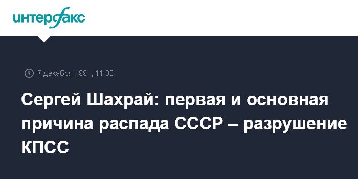 Накануне 30-летия СНГ заслуженный юрист России, профессор Сергей Шахрай размышляет о причинах распада Союза в статье, публикуемой на страницах проекта "Интерфакса" "30 лет назад: хроника последних дней СССР".
