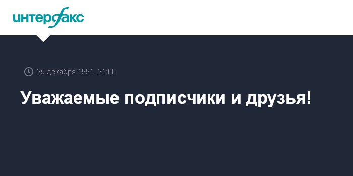 "Интерфакс" завершил проект "30 лет назад: хроника последних дней СССР", который мы осуществляли при содействии Российского исторического общества и который был посвящен одному из важнейших периодов новейшей истории, оказавшему беспрецедентное влияние на судьбу нашей страны и мира в целом.