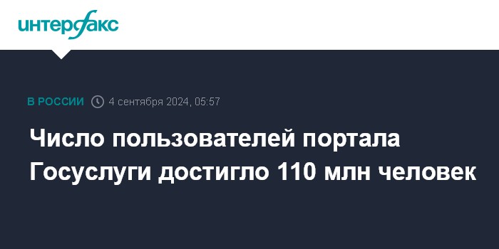 Число пользователей портала Госуслуги достигло 110 млн человек