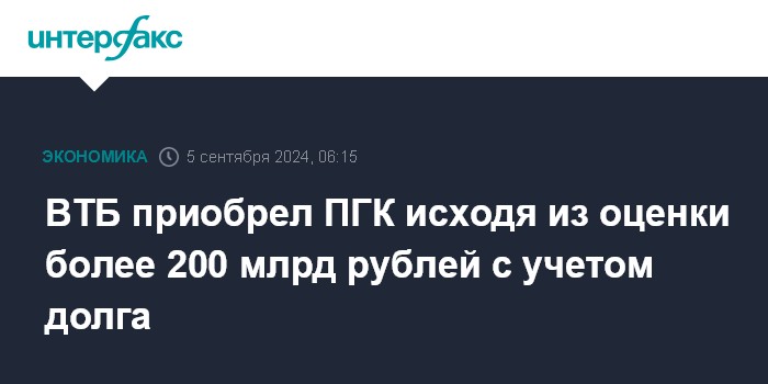 ВТБ приобрел ПГК исходя из оценки более 200 млрд рублей с учетом долга