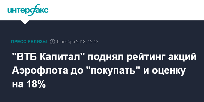 "ВТБ Капитал" поднял рейтинг акций Аэрофлота до "покупать" и оценку на 18%