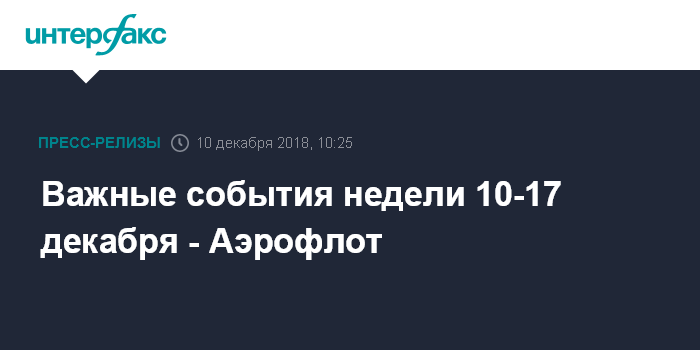Важные события недели 10-17 декабря - Аэрофлот