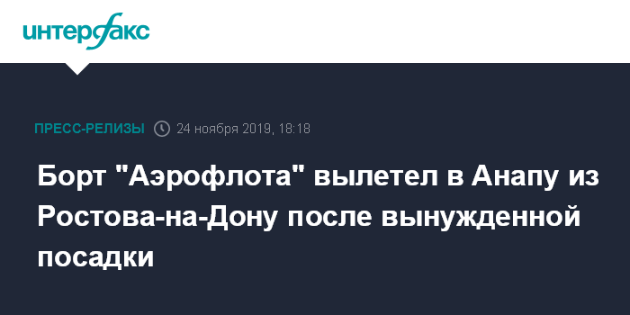 Борт "Аэрофлота" вылетел в Анапу из Ростова-на-Дону после вынужденной посадки