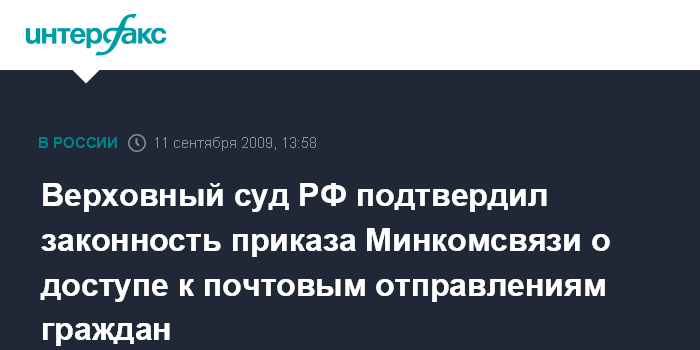 Таким образом, суд подтвердил законность приказа от 19 мая "Об утверждении требований к сетям и средствам почтовой связи для проведения оперативно-розыскных мероприятий".