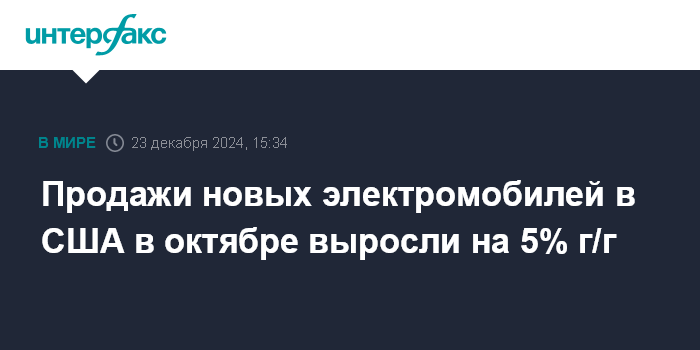 Продажи новых электромобилей в США в октябре выросли на 5% г/г