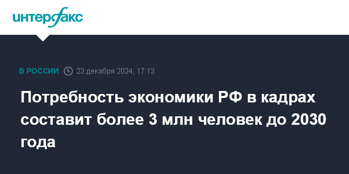 Потребность экономики РФ в кадрах составит более 3 млн человек до 2030 года