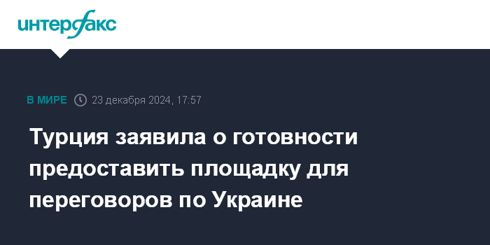 Турция заявила о готовности предоставить площадку для переговоров по Украине