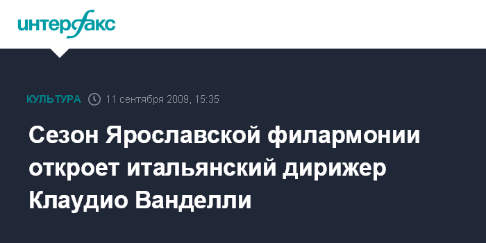 Москва. 11 сентября. INTERFAX.RU - Итальянский дирижер Клаудио Ванделли откроет 73-й концертный сезон Ярославской государственной филармонии, сообщил директор филармонии Юрий Иванов в пятницу на пресс-конференции в пресс-центре "Интерфакса" в Ярославле. Иванов рассказал, что филармонический сезон откроется в воскресенье концертом Академического симфонического оркестра Ярославской филармонии, филармонической капеллы "Ярославия". Солистами выступят Вадим Холоденко (фортепиано, Москва), Александр Тростянский (скрипка, Москва), солистка Баварской Штаатсоперы Елена Максимова (меццо-сопрано), солист Большого театра России Роман Муравицкий (тенор). В программе концерта - оперные и симфонические шедевры, сочинения для фортепиано и скрипки с оркестром Джоаккино Россини, Михаила Глинки, Ференца Листа, Джузеппе Верди, Жоржа Бизе.