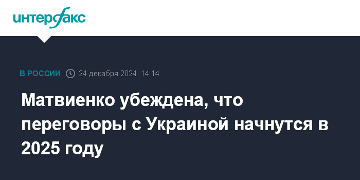 Москва. 24 декабря. INTERFAX.RU - Переговоры по урегулированию конфликта с Украиной несомненно начнутся в следующем году, заявила журналистам спикер Совета Федерации Валентина Матвиенко.