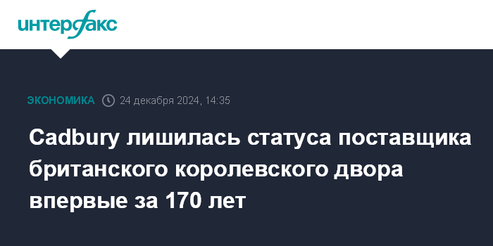 Москва. 24 декабря. INTERFAX.RU - Британский производитель шоколада Cadbury лишился королевского патента на право именоваться поставщиком королевского двора, пишет BBC.