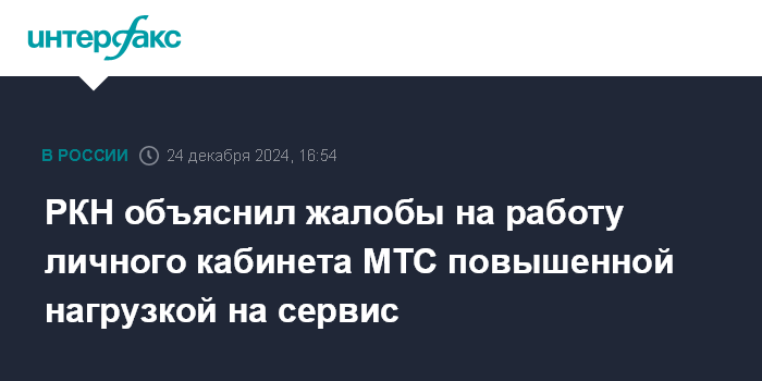 Москва. 24 декабря. INTERFAX.RU - Повышенное количество жалоб пользователей МТС на работу личного кабинета связаны с недостоверной информацией о подключении платных опций и нагрузкой на сервис, сбоев на сети нет, говорится в сообщении на сайте Центра мониторинга и управления сетью связи общего пользования (ЦМУ ССОП) Роскомнадзора.