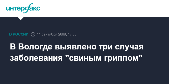 Москва. 11 сентября. INTERFAX.RU - В Вологде зафиксированы первые случаи заболевания гриппом А/H1N1, сообщили "Интерфаксу" в региональном Роспотребнадзоре.