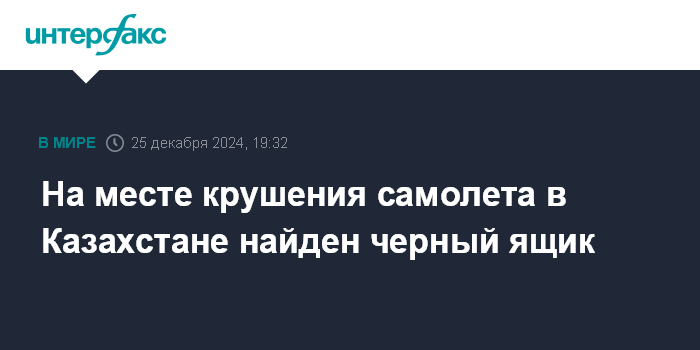 Москва. 25 декабря. INTERFAX.RU - На месте крушения самолета "Азербайджанских авиалиний" в Актау найден черный ящик, сообщил главный транспортный прокурор Казахстана Тимур Сулейменов.