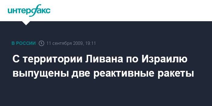 Москва. 11 сентября. INTERFAX.RU - Две реактивных ракеты, выпущенные с территории юга Ливана, разорвались в пятницу на открытой местности в приграничных районах Израиля, сообщает интернет-сайт израильской газеты "Гаарец".