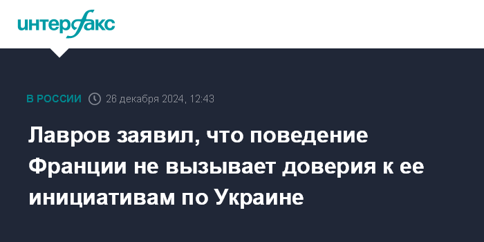 Лавров заявил, что поведение Франции не вызывает доверия к ее инициативам по Украине